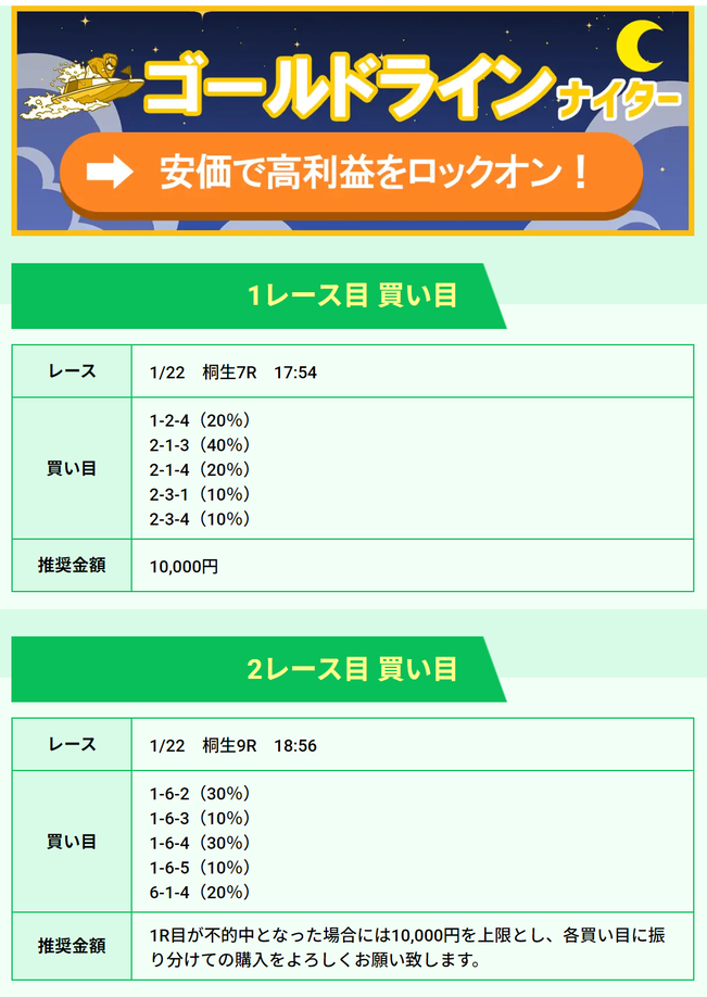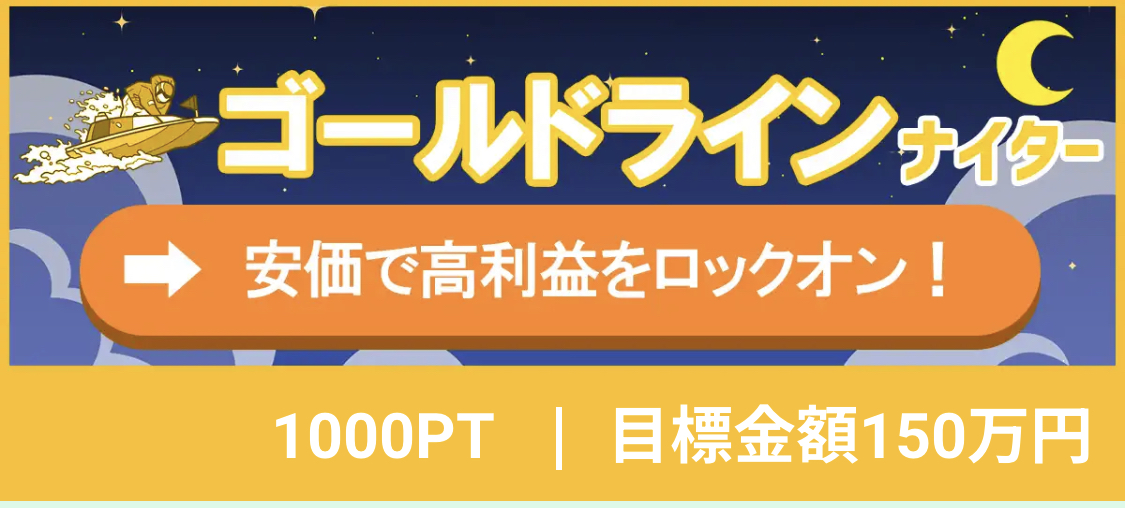 | ゴールドライン ナイター | 1000ポイント | ¥10,000 | 失敗 | ¥0 | ||
