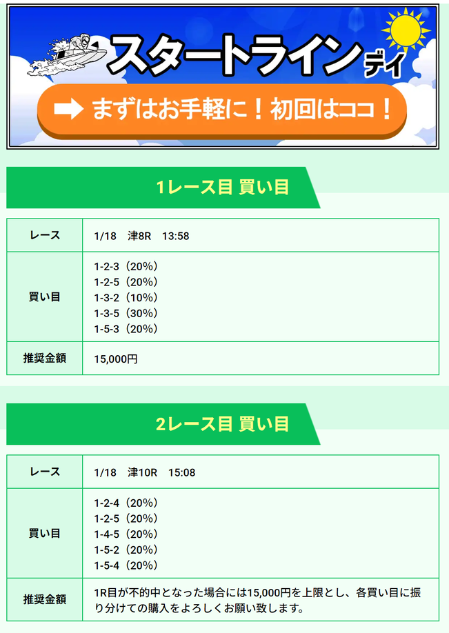 | 1/18 | スタートライン デイ | 250ポイント | ¥15,000 | コロガシ成功 | ¥324,700 | ¥664,840 |