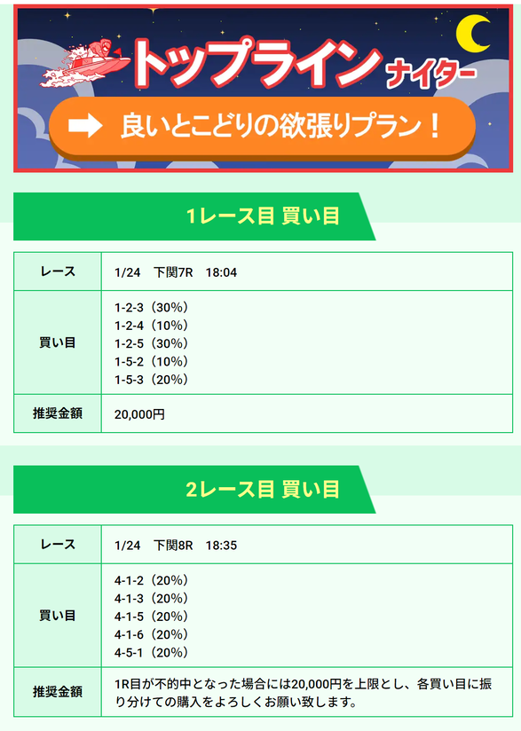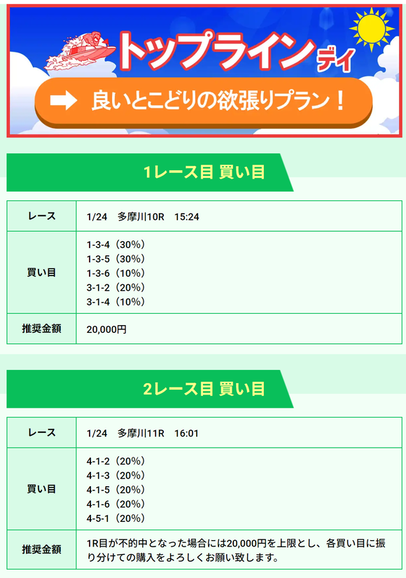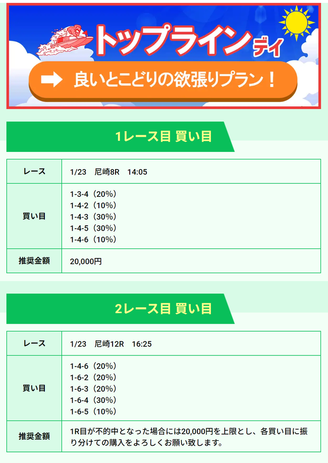 | 1/23 | トップライン デイ | 2000ポイント | ¥20,000 | 失敗 | ¥0 | ¥2,036,110 |