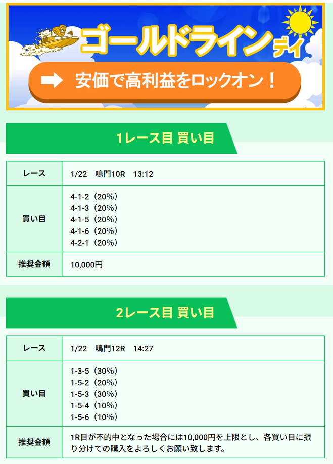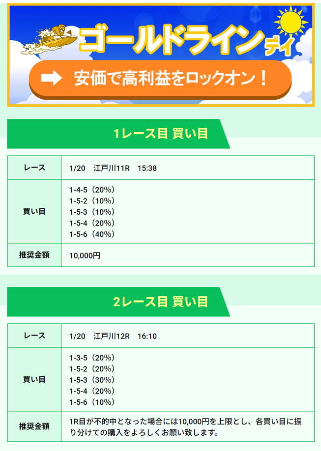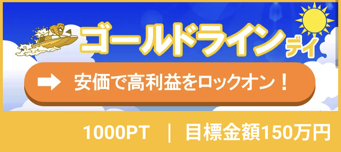 | 1/20 | ゴールドライン デイ | 1000ポイント | ¥10,000 | コロガシ成功 | ¥1,574,310 | ¥2,934,610 |