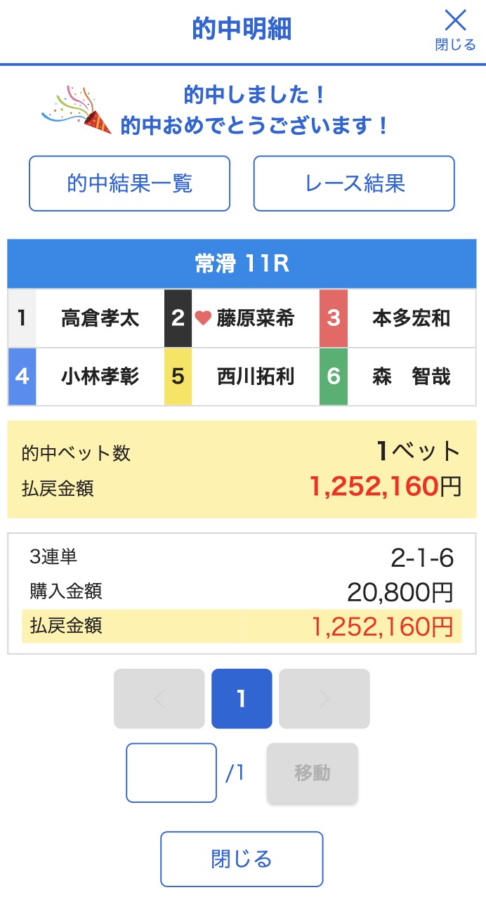 2-1-4 | ○20,6倍 | 0pt | ¥5,000 | ¥20,600 | +15,600円 | |